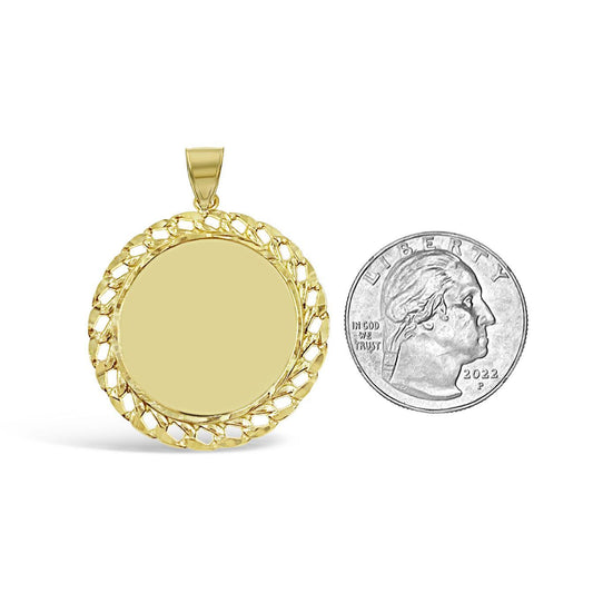 10K Yellow Gold Round Memory Picture Photo Frame Pendant Cuban Link Bezel