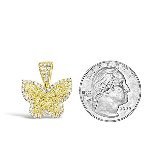 Butterfly Nugget Pendant Real 10k Yellow Gold CZ Charm 0.9 inch