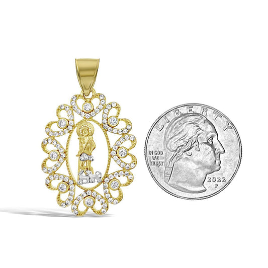 14K Yellow White Gold Saint Barbara Pendant CZ Religious Mens Charm 1.5 inch