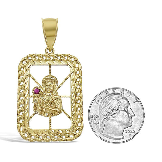 14K Yellow Gold Virgin Mary Lady Guadalupe Oval Pendant