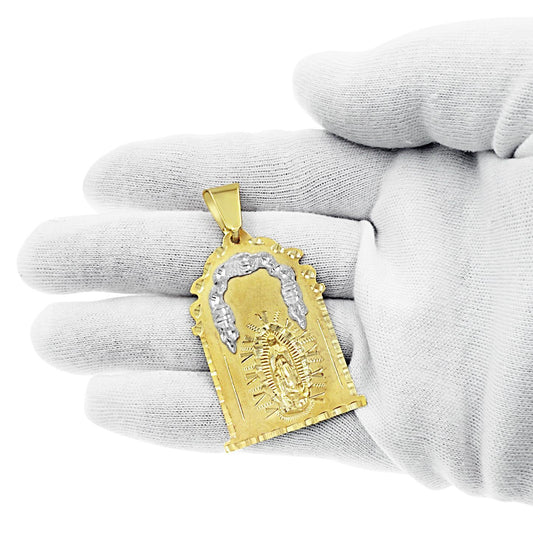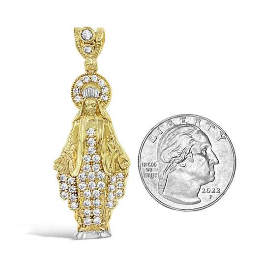 14K Yellow Gold Virgin Mary Lady Guadalupe Pendant CZ Charm 1.6 inch