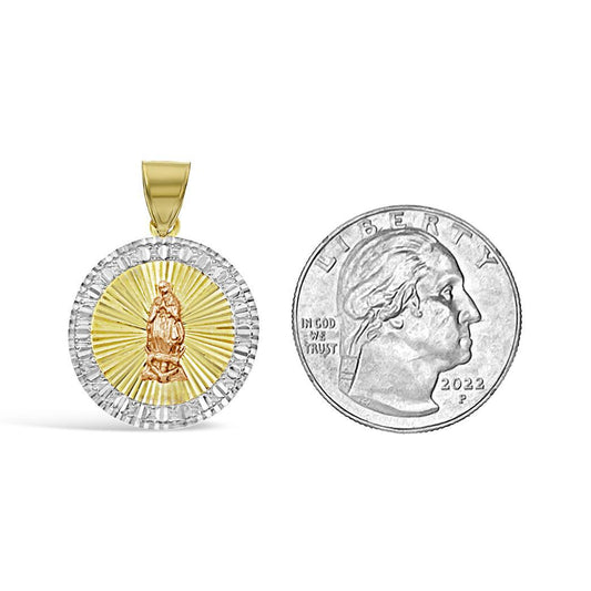 14K Tri Color Gold Virgin Mary Round Pendant