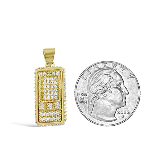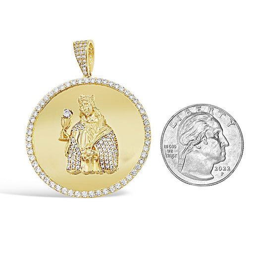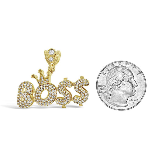 14K Yellow Gold Boss Crown Pendant With CZ Iced Charm