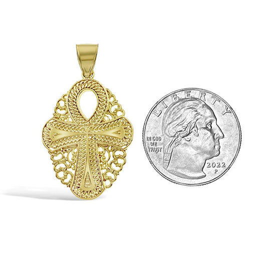 10K Yellow Gold Egyptian Ankh Cross Pendant Religious Mens Charm 1.4 inch