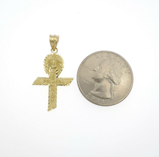 10k Yellow Gold Primera Comunion Cross Pendant Charm 1.3 inch