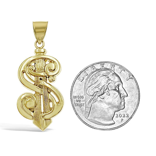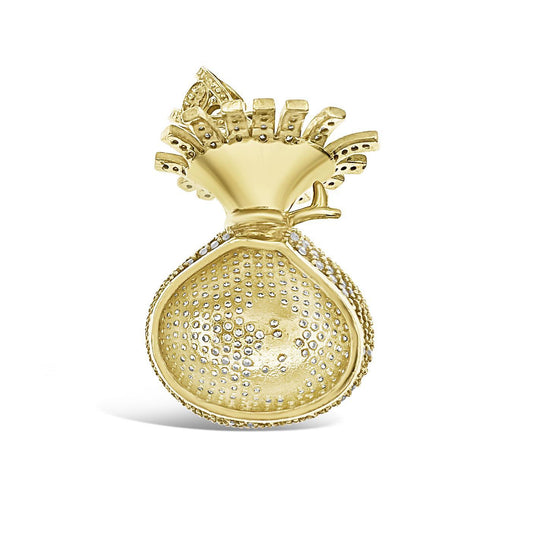 Money Bag Pendant Mens Charm 3D Dollar Sign 10k Yellow Gold 1.6 inch