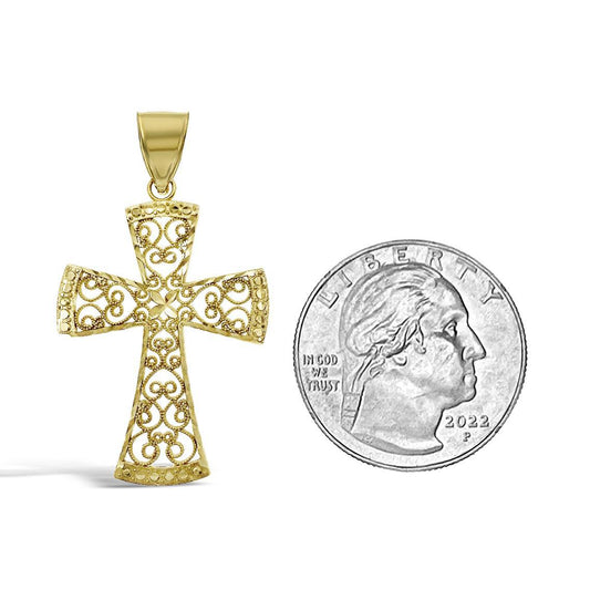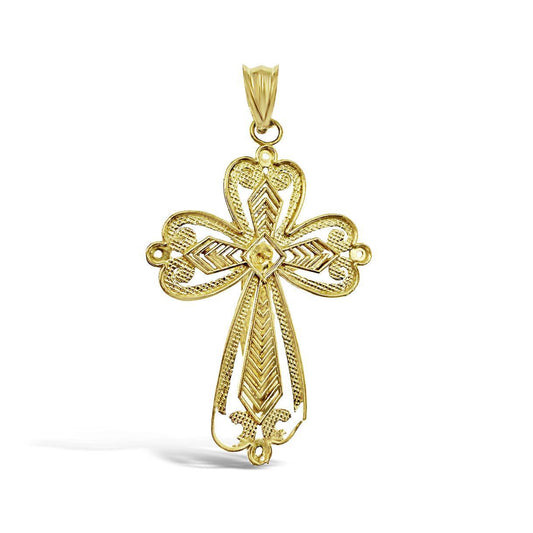 Cross Pendant Charm 10k Yellow Gold 1.9 inch