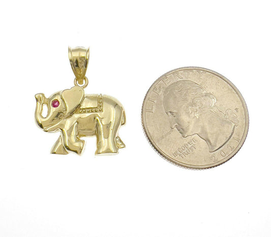 Elephant Pendant Lucky Charm 10k Yellow Gold 1 inch