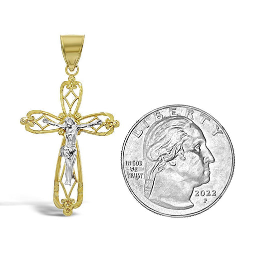 Cross Jesus Crucifix Pendant Real 10k Yellow White Gold Charm 1.5 inch