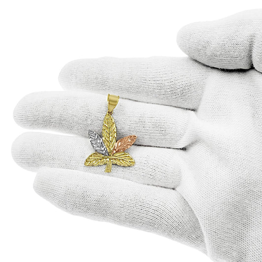 Marijuana Leaf Pendant 10k Tri Color Gold Cannabis Weed Pot Mens Charm 1.3 inch