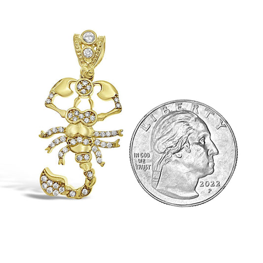 Scorpio Pendant Zodiac Star Sign Charm 10k Yellow Gold CZ 1.5 inch
