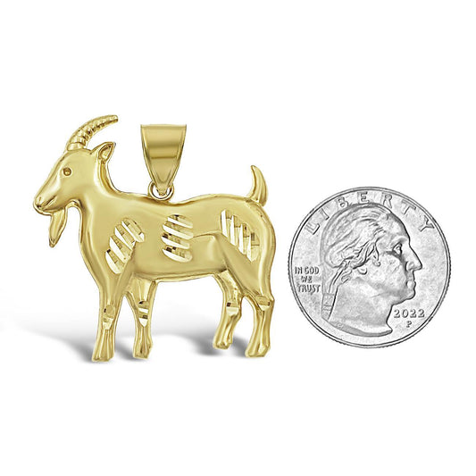 Goat Pendant Charm 10k Yellow Gold 1.5 inch