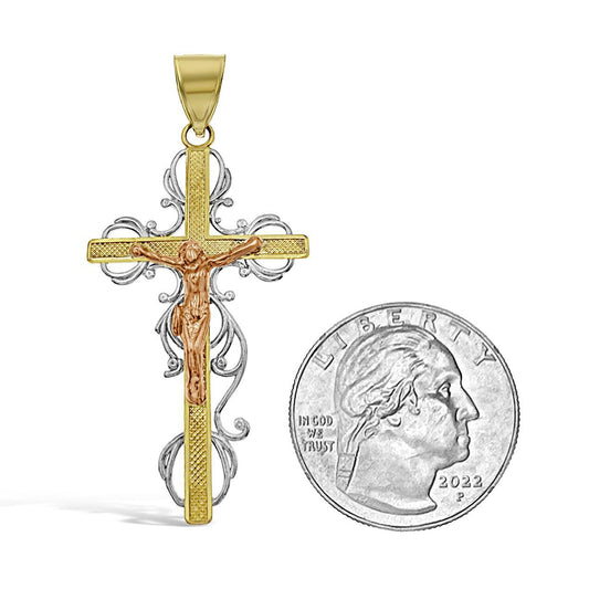 Cross Jesus Crucifix Pendant 10k Yellow White Rose Gold Charm 2 inch