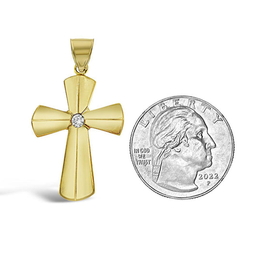 Cross Pendant Charm Real 10k Yellow Gold CZ 1.5 inch