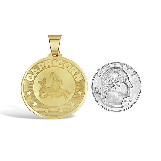 14k Yellow Gold Capricorn Pendant Zodiac Star Sign Charm 1.7 inch