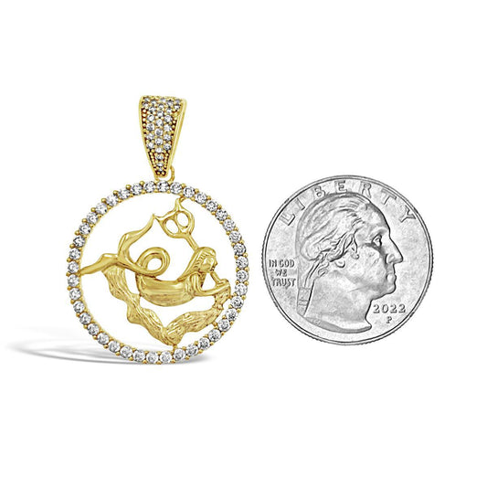 14k Yellow Gold Aquarius Pendant Zodiac Star Sign CZ Charm 1.5 inch
