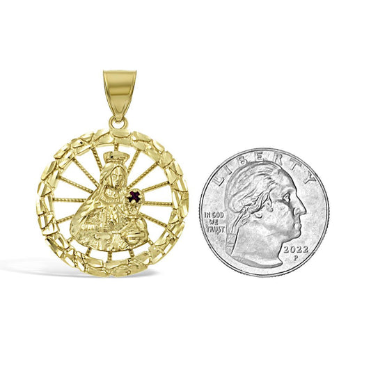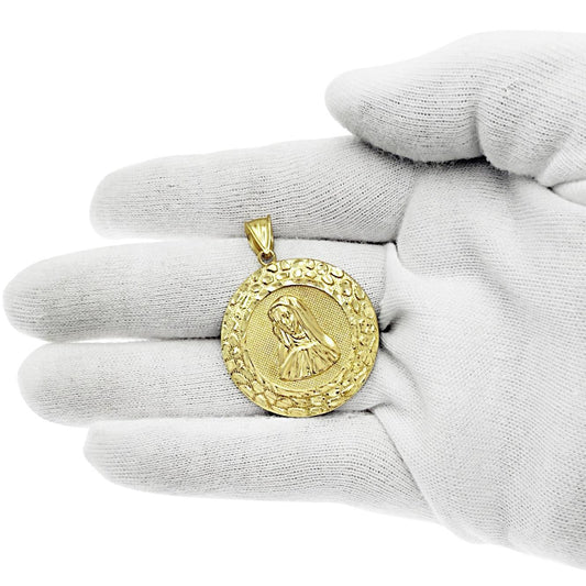 Virgin Mary Pendant Lady Guadalupe Charm 10k Yellow Gold 1.6 inch