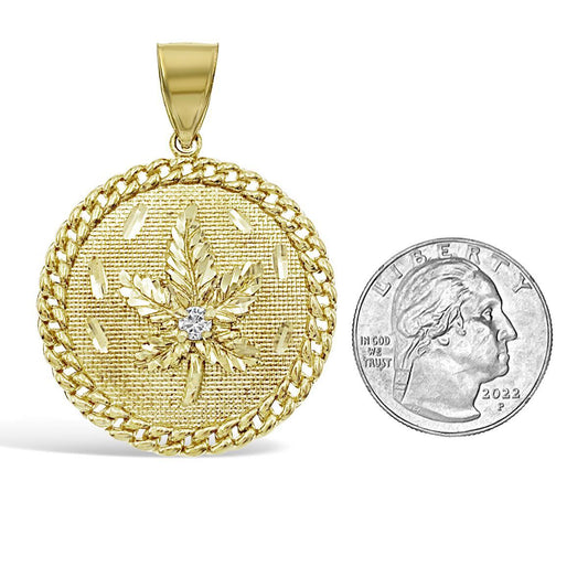 Marijuana Leaf Pendant 10k Yellow Gold Cannabis Weed Pot Mens CZ Charm 2 inch
