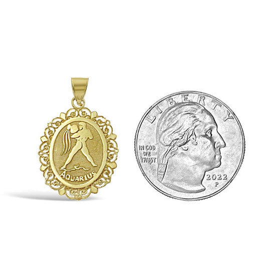 10k Yellow Gold Aquarius Pendant Zodiac Star Sign Charm 1.1 inch