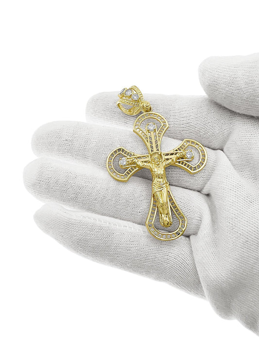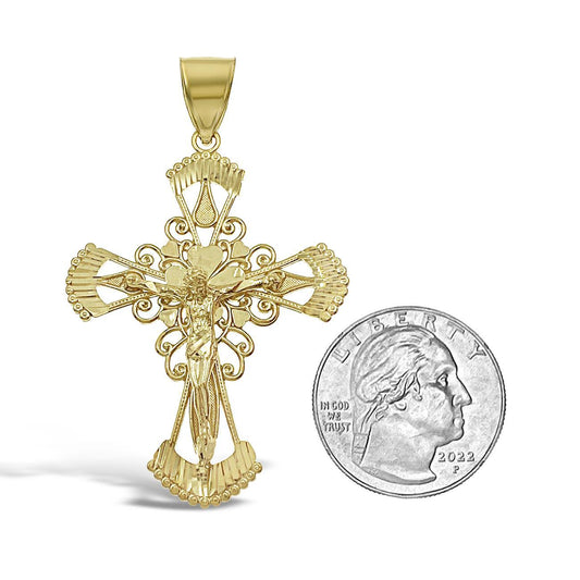 10k Yellow Gold Cross Crucifix Pendant Mens Charm 2.1 inch