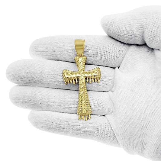 Cross Dripping Pendant Mens Charm 10k Yellow Gold Diamond Cut 2.2 inch