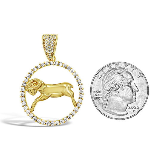 14k Yellow Gold Aries Pendant Zodiac Star Sign CZ Charm 1.5 inch