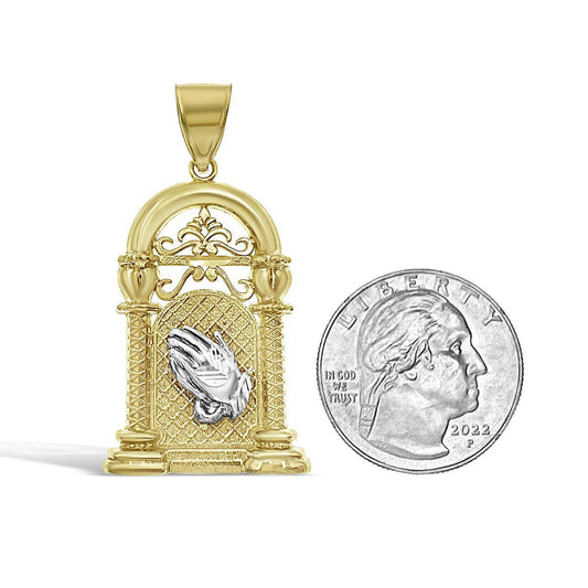 Praying Hands Arch Pendant 10k Yellow White Gold Charm 1.9 inch