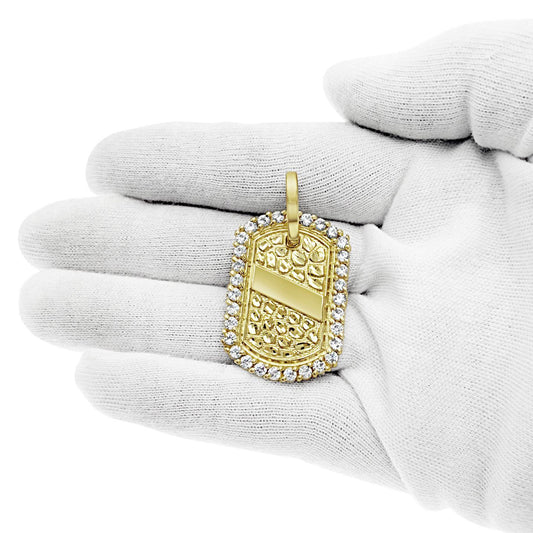 Dog Tag Nugget Pendant CZ Charm Real 10k Yellow Gold 1.7 inch