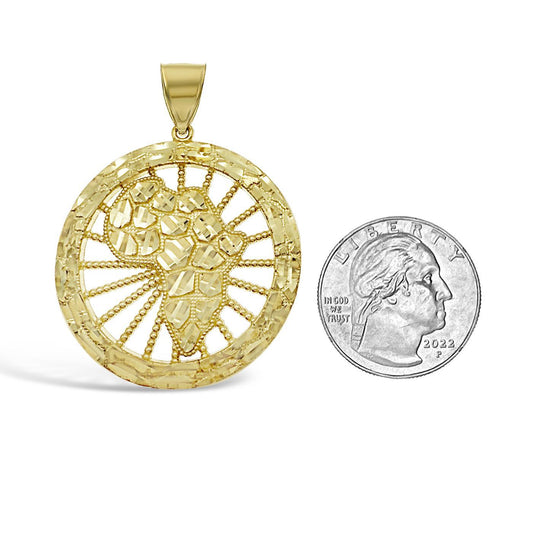 Africa Map Continent Pendant Nugget Mens Round Charm 10k Yellow Gold 1.9 inch