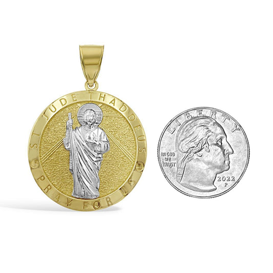 Saint Jude Thaddeus Pendant Round Charm 10k Yellow White Gold 1.9 inch