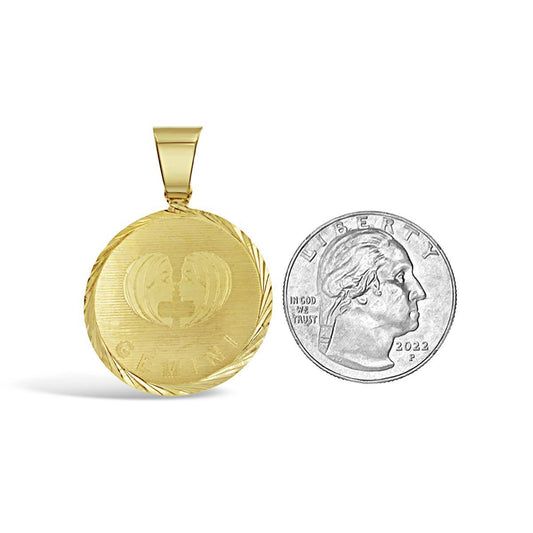 14k Yellow Gold Gemini Pendant Zodiac Star Sign Charm 1.5 inch