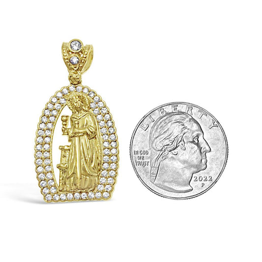 10k Yellow Gold Saint Barbara Pendant CZ Charm 1.5 inch