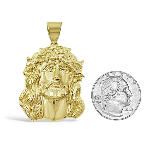 Jesus Head Pendant Mens Charm 10k Yellow Gold 2.1 inch