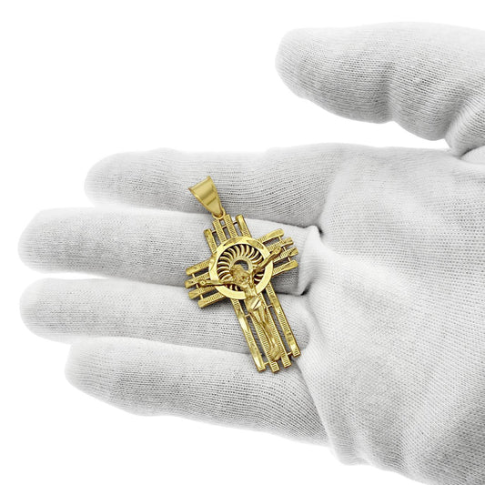 Cross Jesus Crucifix Pendant Real Solid 10k Yellow Gold Mens Charm 2.3 inch