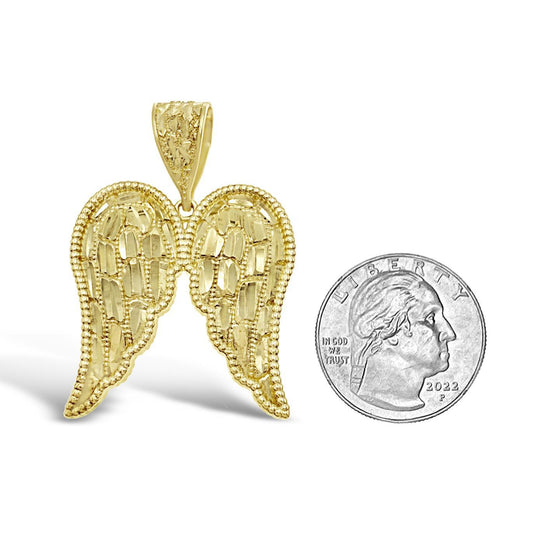 Wings Pendant Mens Charm 10k Yellow Gold Diamond Cut 1.7 inch