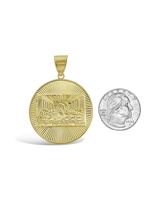 Last Supper Round Pendant Charm 10k Yellow Gold 1.8 inch