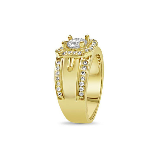 14k Yellow Gold Round CZ Mens Ring Band