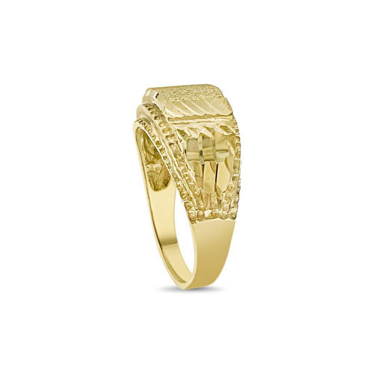 10k Yellow Gold Nugget Mens Signet Pinky Ring Band