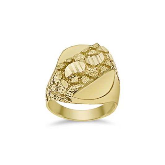 Nugget Rectangular Mens Ring 10k Yellow Gold