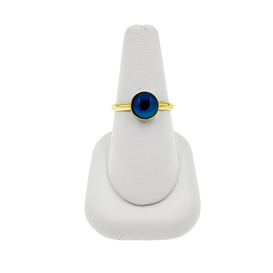 14K Yellow Gold Blue Evil Eye Womens Ring Protection Jewelry