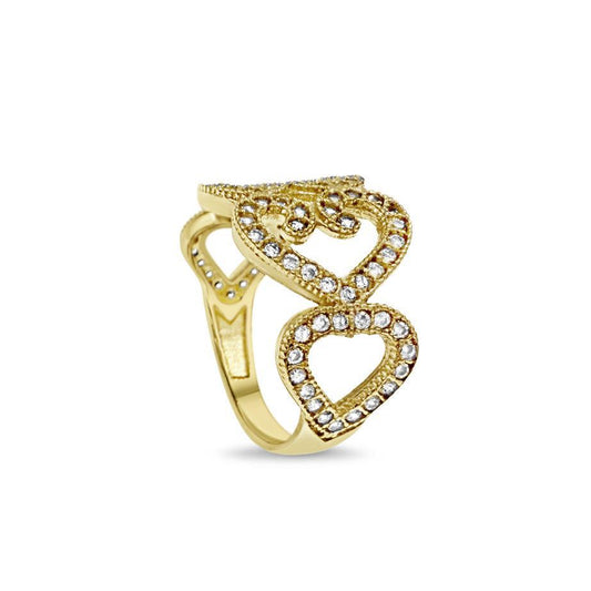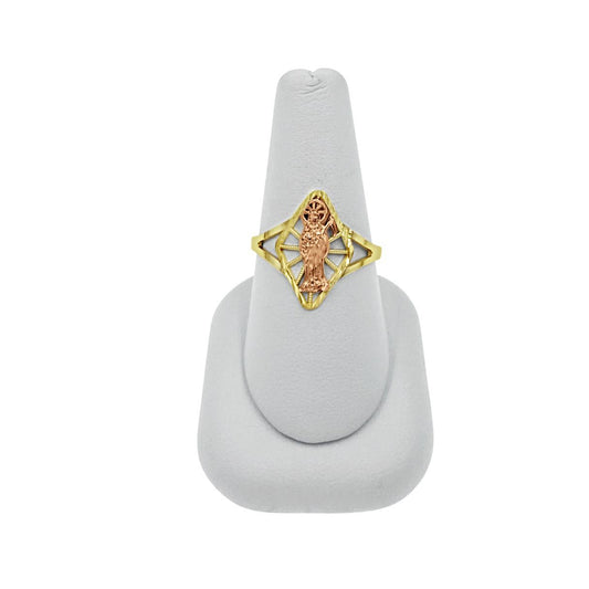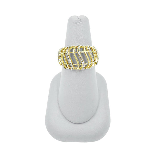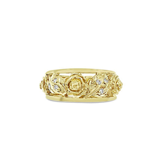 14K Yellow Gold Rose Band Ring CZ Openwork