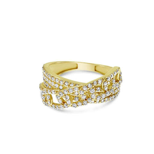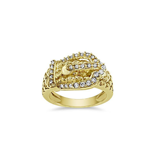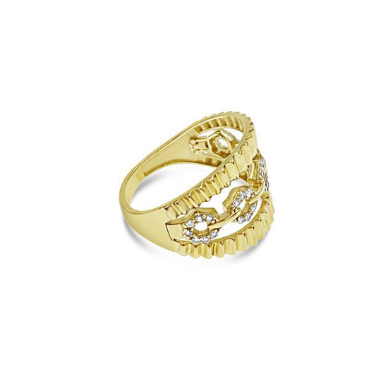 14K Yellow Gold CZ Buckle Ring Statement Fashion Band Womens