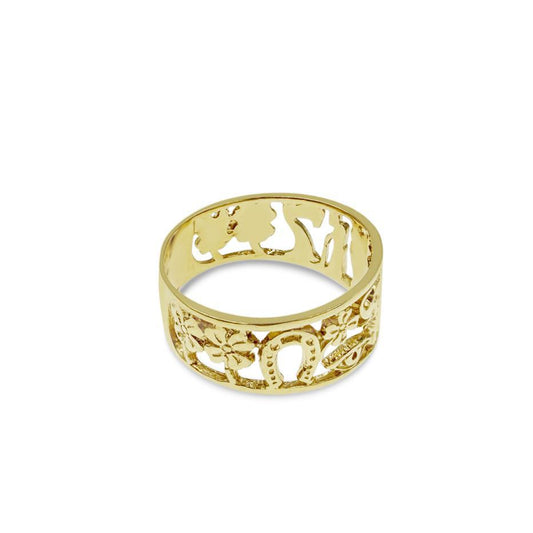 14K Yellow Gold Good Luck Band Ring Elephant Owl Cut out
