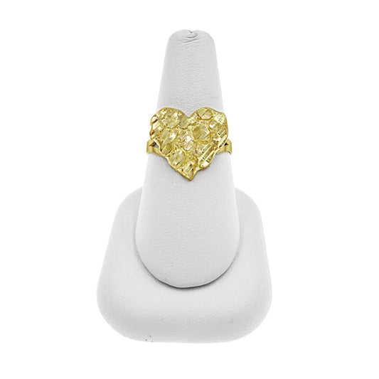 10k Yellow Gold Nugget Heart Ring Women Textured Statement Jewelry
