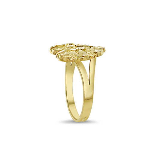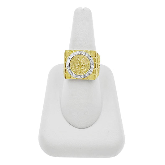 14K Gold Mexican Centenario 50 Peso Coin Ring Mens Nugget Band Signet