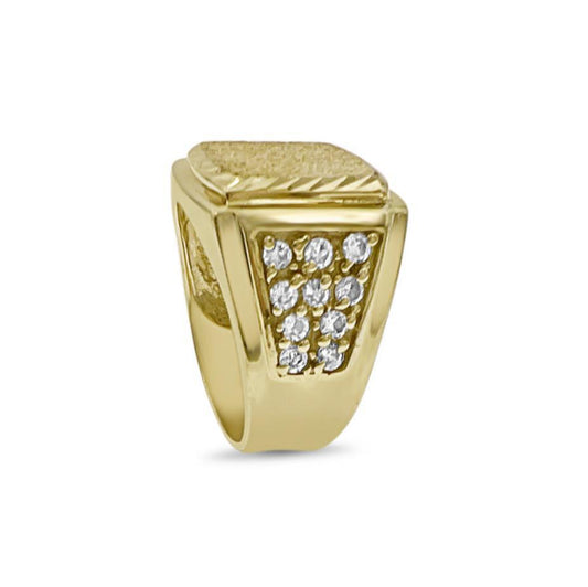 10k Yellow Gold Signet Pinky Mens Ring Band CZ
