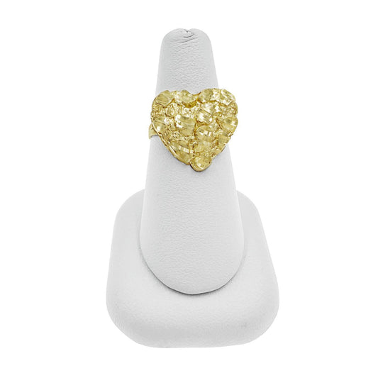 10K Yellow Gold Nugget Heart Ring Women Real Gold Textured Statement Jewelry