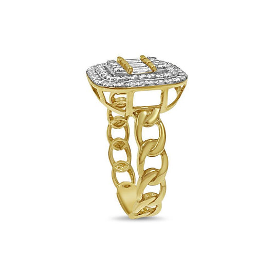 14k Yellow Gold Cuban Chain Ring CZ