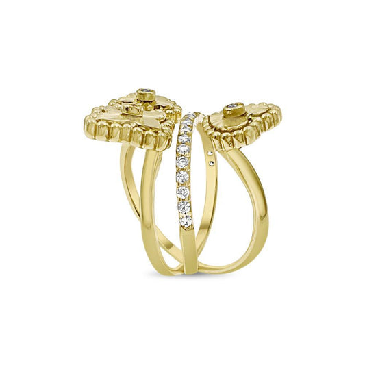 14k Yellow Gold Bypass Ring Womens Crossover Flower Heart Band CZ