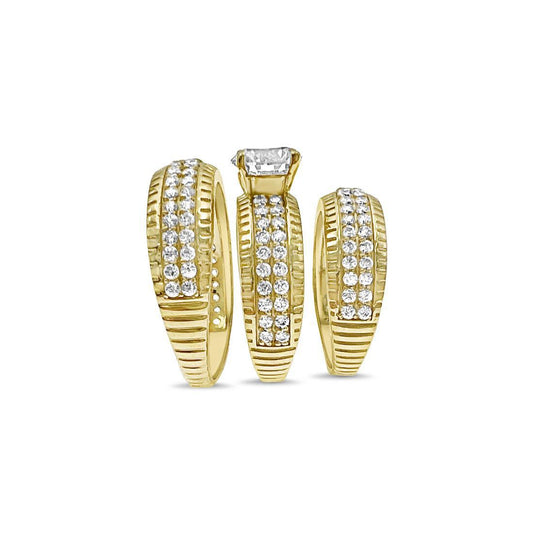 14k Yellow Gold Trio Wedding Ring Band Set His Her Bridal Engagement
